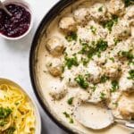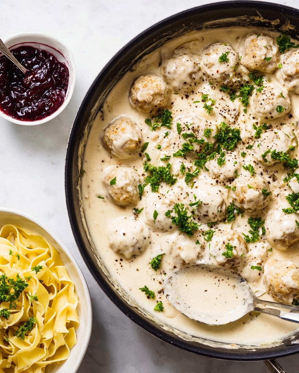 I always sprinkle freshly minced parsley on top—it adds just enough freshness and makes the dish look inviting. And don’t skip the cranberry sauce or lingonberry jam if you can find it; that little fruity tanginess next to the creamy sauce is absolutely iconic and elevates the whole experience.