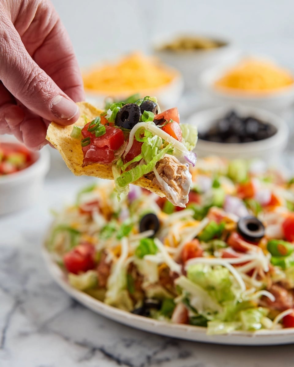 One fun trick I’ve tried is building this dip in a clear glass trifle bowl or even individual clear jars for parties—guests can see all those colorful layers, and it looks seriously festive. For holiday gatherings, I shape the top layer of lettuce into a wreath shape and dot with cherry tomato “berries” for a seasonal spin.