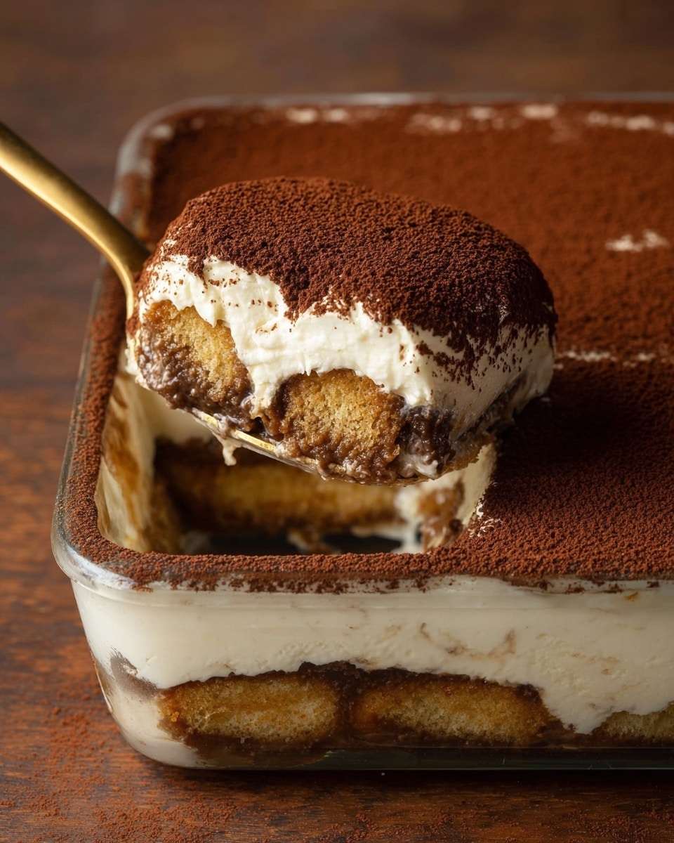 - Finish and Serve: Just before serving, dust the top with cocoa powder to enhance the tiramisu flavor.